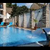 A szabadtéri, feszített víztükrű medence a napsütéses nyári hónapokban nyújt kikapcsolódást, felfrissülést.